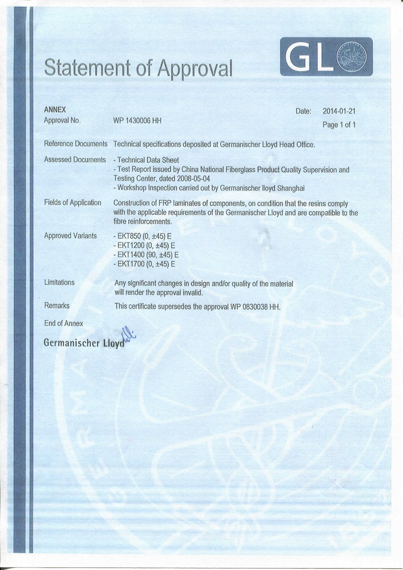 上一篇: Previous article: GL认证 经编 EKT1200(0,+45,-45)E 2014.1.21-2018.1.